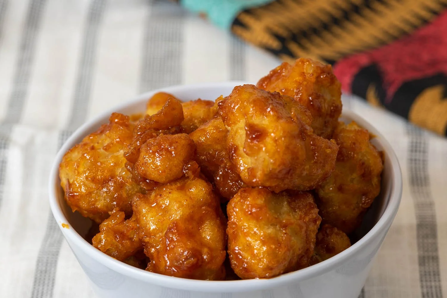 Breaded and twice fried chicken for a crispy perfection. Glazed with a sweet Korean BBQ sauce